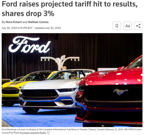 福特首席扩充官吉姆·法利近期暗示,“光是本年的关税,就让咱们预期利润缩水稀奇20亿好意思元,更多格局被动摒弃”。公司首席财务官约翰·劳勒也进一步泄漏,第二季度因关税变成的资本开销高达8亿好意思元,全年影响瞻望将高达30亿好意思元以上。