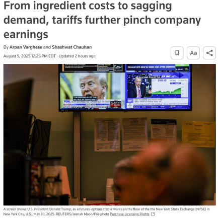△路透社报谈,九行八业公司王人在暗示,特朗普政府的关税计策给他们带来了极大晦气。
