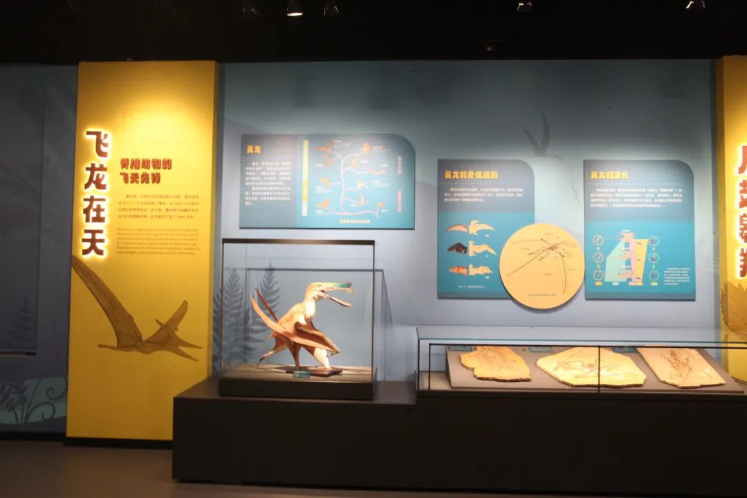 “飞龙在天”单位展示了翼龙的演化,在这里不错见到著名的翼龙演化发展的中间顺序——达尔文翼龙标本。
