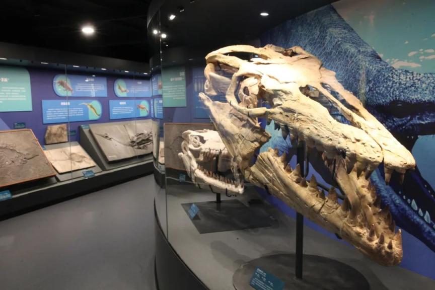 在“重返海洋”单位,请问爬活动物重返海洋的演化古迹,除了广漠高超的标本模子,最值得眷注的是一具沧龙头骨化石,沧龙在那时是体长可达15米的海洋悍戾猎手。