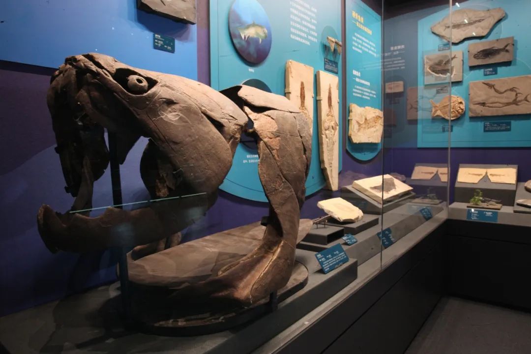 “海洋中来”单位阐释最早发祥于海洋的脊椎动物,其中展示了已知最早的脊椎动物之一——海口鱼,以及泥盆纪海洋中的霸主邓氏鱼。